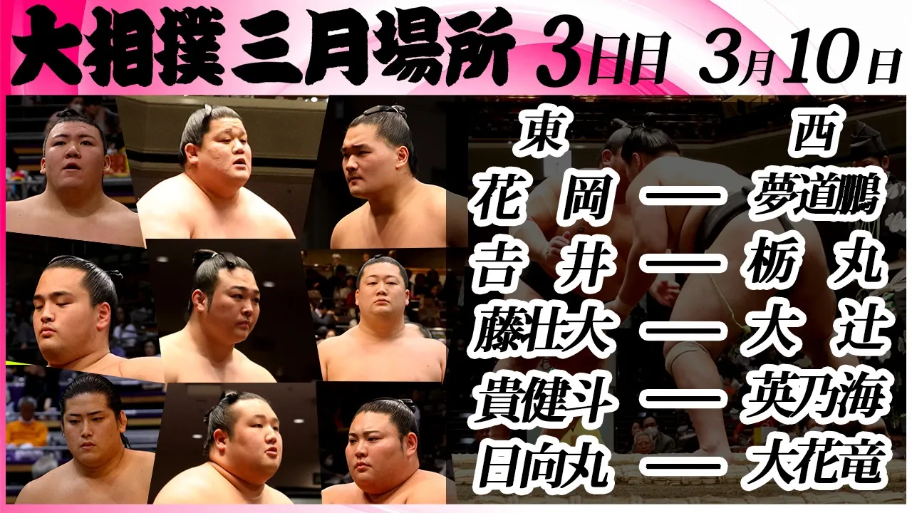 大相撲 幕下上位五番(大花竜、藤壮大、大辻、花岡)<令和8年三月場所・3日目>SUMO