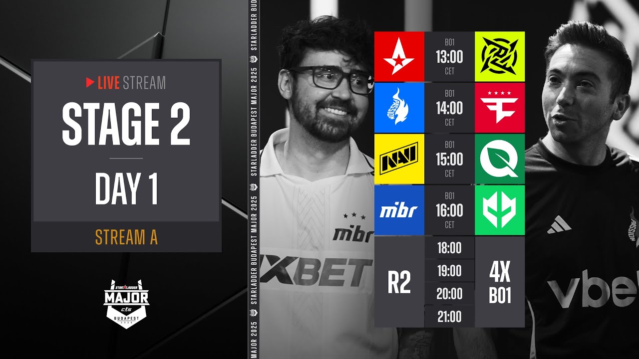 Welcome to StarLadder CS2 Budapest Major 2025 Stage 2 Stream A! The LAN action continues here. 8 surviving teams from Stage 1 collide with eight invited contenders in a Swiss-format fight for the final eight places in Stage 3 of the Major. Stars and powerhouses like MAJ3R, woxic, Aleksib, iM, Magisk, ruggah, Ex3rcice, bodyy, ultimate, NAF-FLY, brnz4n, Qikert, JT, hallzerk, Kvem, JamYoung, and Attacker go head-to-head in these pressure-heavy matchups LIVE from MTK Sportpark, Budapest. Expect high-stakes Counter-Strike 2, top-level teamplay, and the kind of momentum swings that only happen at a Major. Whether you’re here for pro strats, clutch rounds, or full match VODs, you’re in the right place. 8 spots. No second chances. Who makes it through? 👉 Subscribe for full StarLadder Budapest Major coverage ⚡️ https://x.com/StarLadder_CS ⚡️ https://instagram.com/StarLadderCS ⚡️ https://t.me/Starladder_CS ⚡️ https://facebook.com/StarLadderCS 👉 Turn on notifications so you don’t miss matches, highlights, and live shows. #StarLadder #BudapestMajor JPYJ1XZBAQBID34C