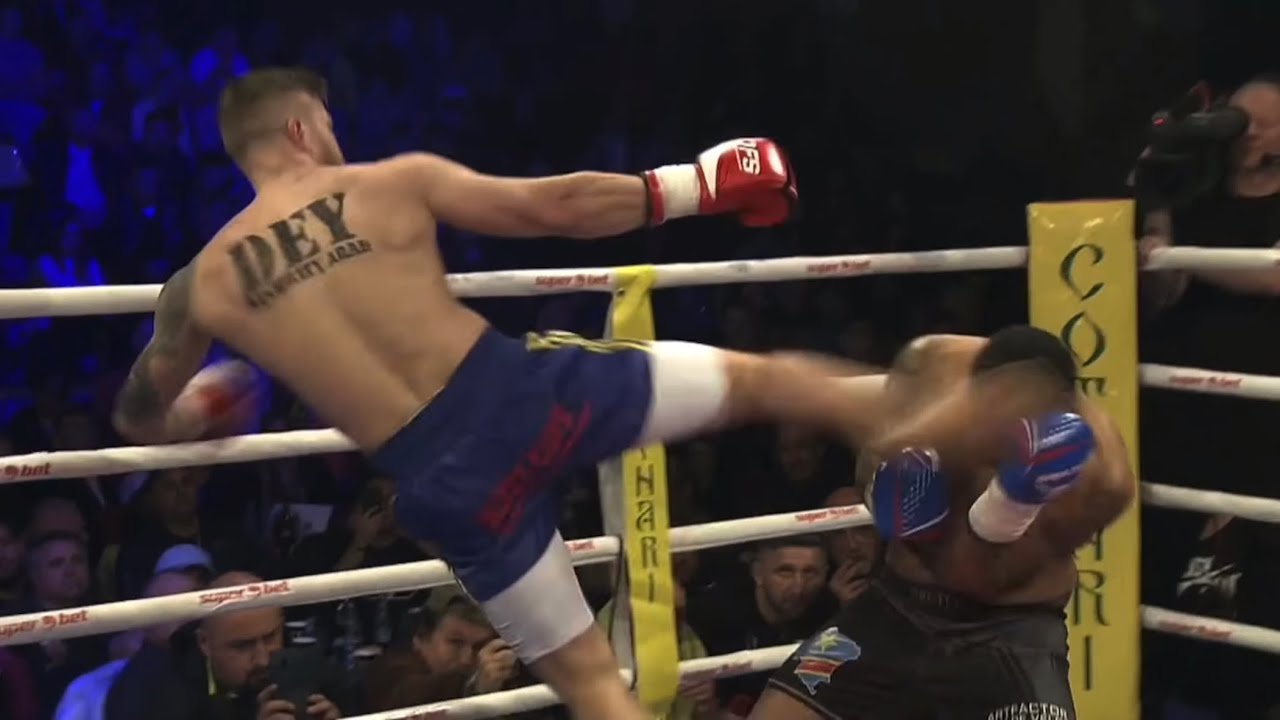 Football skills used in kickboxing fight. Amazing thunder kick in Dynamite Fighting Show