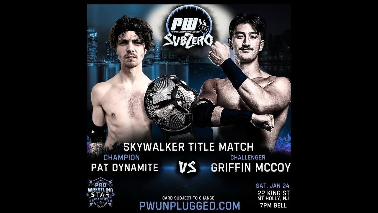This match features PWU Skywalker Champion Pat Dynamite defending his championship against challenger Griffin McCoy at PWU Sub-Zero on 1/24/2026 which took place at the Pro Wrestling Star Academy