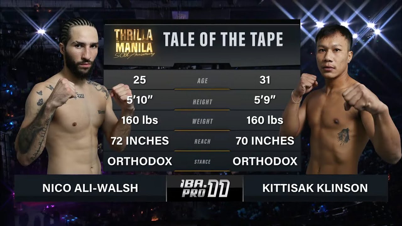 An 8-round pro bout at IBA.Pro 11 in Manila, Philippines. The match ended in a majority draw between Nico Ali Walsh and Kittisak Klinson.