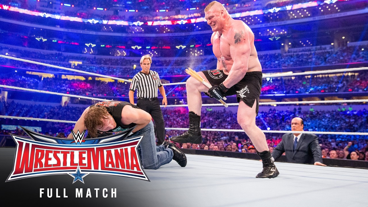 Brock Lesnar dishes out the punishment in a gruesome No Holds Barred Street Fight against Dean Ambrose at WrestleMania 32. Find the latest Superstar gear at WWEShop: http://shop.wwe.com --------------------------------------------- Check out these other channels! --------------------------------------------- WWE: https://www.youtube.com/wwe WWE Español: https://www.youtube.com/@wweespanol WWE Arabic: https://www.youtube.com/@wwearabic WWE NXT: https://www.youtube.com/@wwenxt WCW: https://www.youtube.com/@wcw WWE Music: https://www.youtube.com/wwemusic UpUpDownDown: https://www.youtube.com/upupdowndown Celtic Warrior Workouts: https://www.youtube.com/@CelticWarriorWorkouts --------------------------------------------- Subscribe to our Podcasts! --------------------------------------------- Raw Recap: https://youtube.com/playlist?list=PLqIVmFaHA8Bp7WjqbST0DvZWLCiXPXUt_ Six Feet Under with The Undertaker: https://www.youtube.com/@Undertaker What Do You Wanna Talk About? With Cody Rhodes: https://www.youtube.com/@CodyRhodes What's Your Story? With Steph McMahon: https://www.youtube.com/@StephanieMcMahon ------------------------------------ WWE on Social Media ------------------------------------ X: https://twitter.com/wwe Facebook: https://www.facebook.com/wwe Instagram: https://www.instagram.com/wwe/ TikTok: https://www.tiktok.com/@wwe ------------------------------------