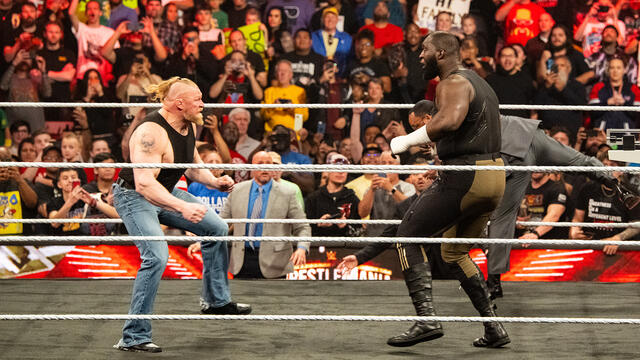 Before their WrestleMania 39 showdown, Brock Lesnar and Omos do an official weigh-in.