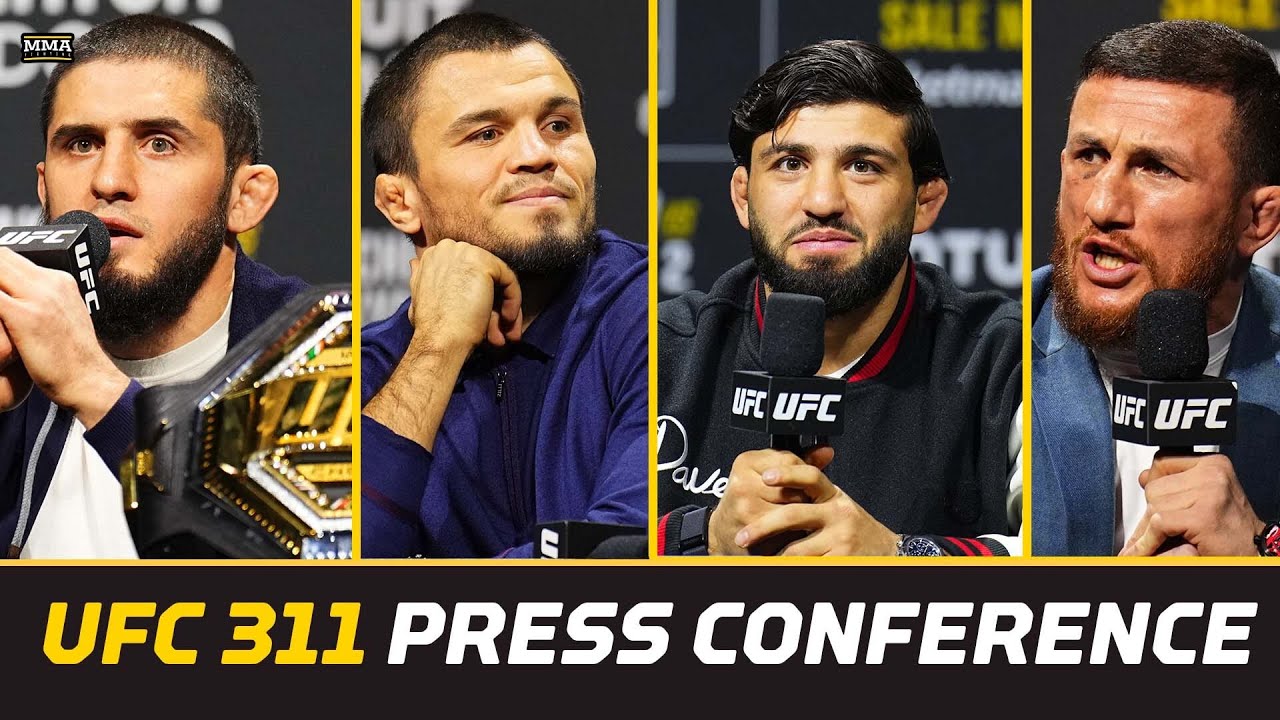 At UFC 311 press conference, Islam Makhachev, Armen Tsarukyan, Merab Dvalishvili, and Umar Nurmagomedov discussed their clashes next month Friday evening in Las Vegas. Join this channel to get access to perks: https://www.youtube.com/cha.../UC4f1JueVgo5t9HSmobCRPug/join Subscribe to MMA Fighting on YouTube: http://goo.gl/dYpsgH Subscribe to MMA Fighting feed on iTunes: https://podcasts.apple.com/.../mma-fighting/id320642139 Check out our full video catalog: http://goo.gl/u8VvLi Visit our playlists: http://goo.gl/eFhsvM • Like on Facebook: https://mma-fighting.visitlink.me/jXx747 • Follow on X: https://mma-fighting.visitlink.me/oHZAG3 • Follow on Instagram: https://mma-fighting.visitlink.me/eZP5ff • Follow on TikTok: https://mma-fighting.visitlink.me/DZzQ3W • Follow on Threads: https://mma-fighting.visitlink.me/pJJ2xj • Follow on Bluesky: https://mma-fighting.visitlink.me/GIxe-N • Subscribe on Twitch: https://mma-fighting.visitlink.me/nSjCJV Read More: http://www.mmafighting.com MMA Fighting is your home for exclusive interviews, live shows, and more for one of the world's fastest-growing sports. Get latest news and more here: http://www.mmafighting.com See less
