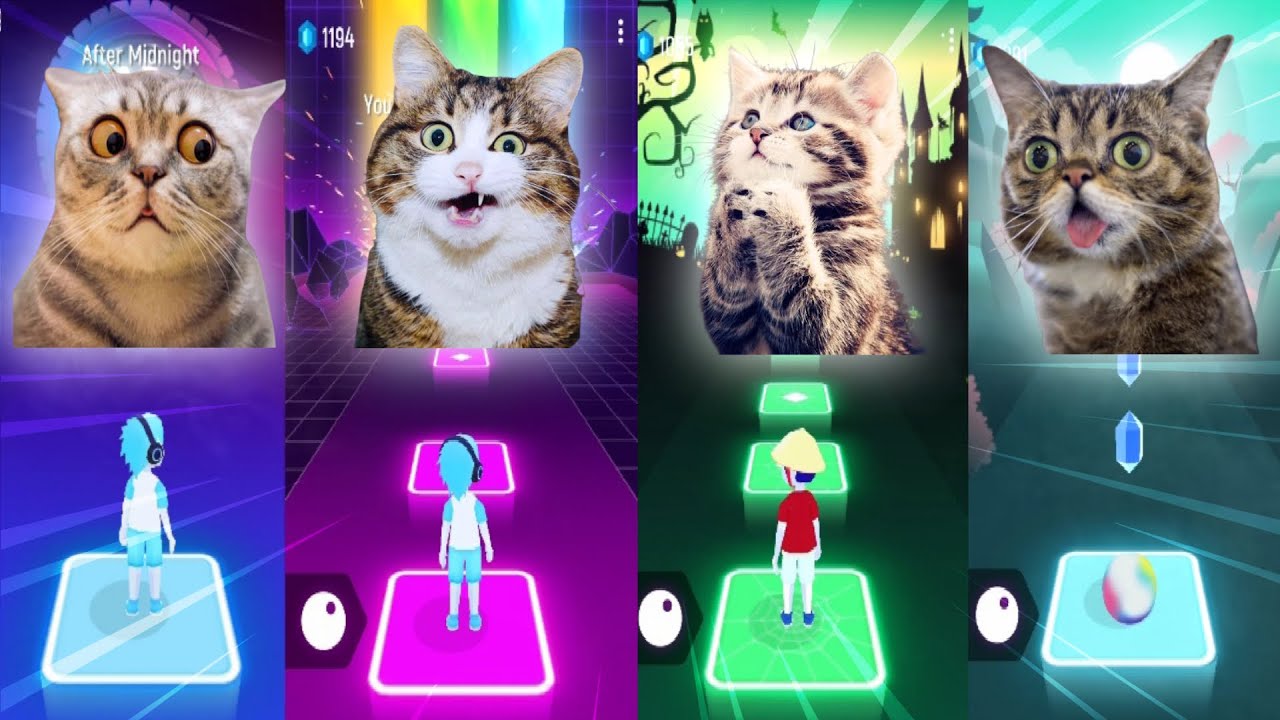 Funny cats: Scared cat vs Angry cat vs Cute cat vs Surprised cat | Tiles Hop BitGame