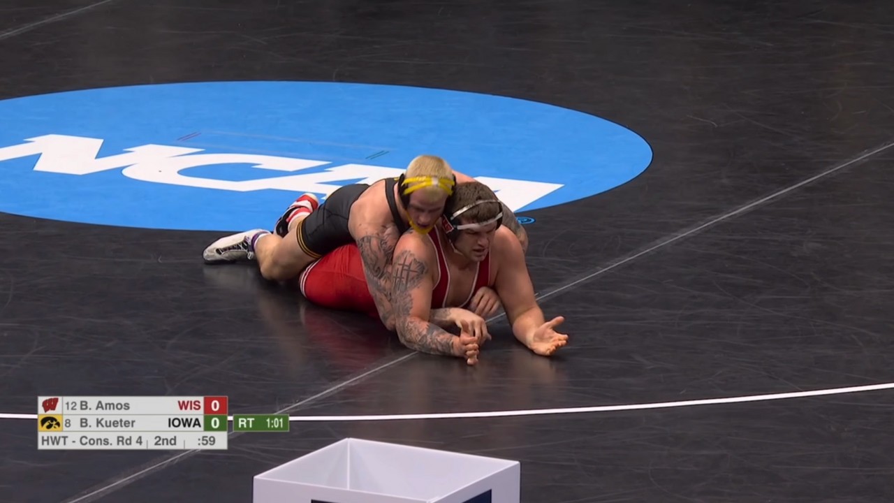 2026 NCAA Wrestling Championships bloodround HWT Ben Kueter (IOWA) dec Braxton Amos (WISC) I do not own this video, all credit/rights to ESPN/NCAA