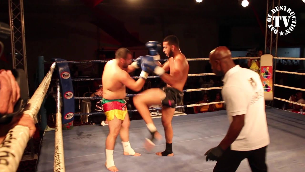 Jiyan Ayav TEAM DAY OF DESTRUCTION vs John Granville TEAM SNIPER. K-1 fight at -Fighting with the Stars- comedy & kickboxing event in Paramaribo - Suriname on 23rd of December 2014.