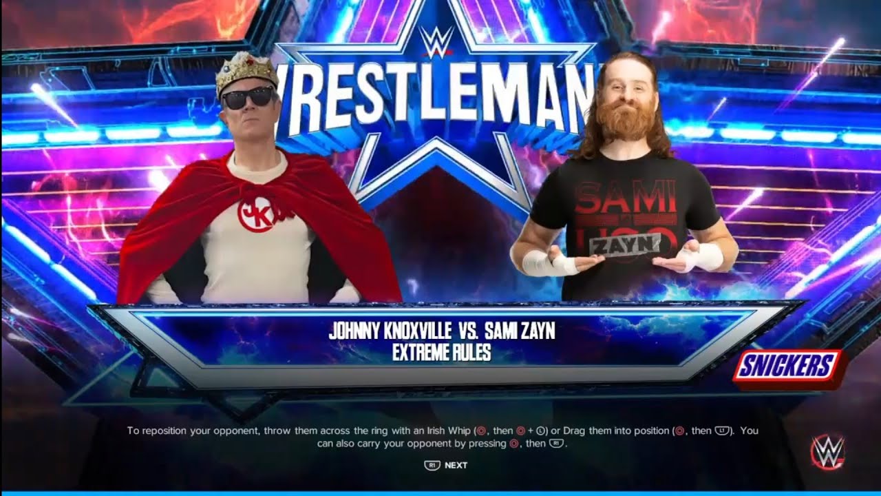Johnny Knoxville vs Sami Zayn Jackass Rules Match WrestleMania 38. WWE 2K23