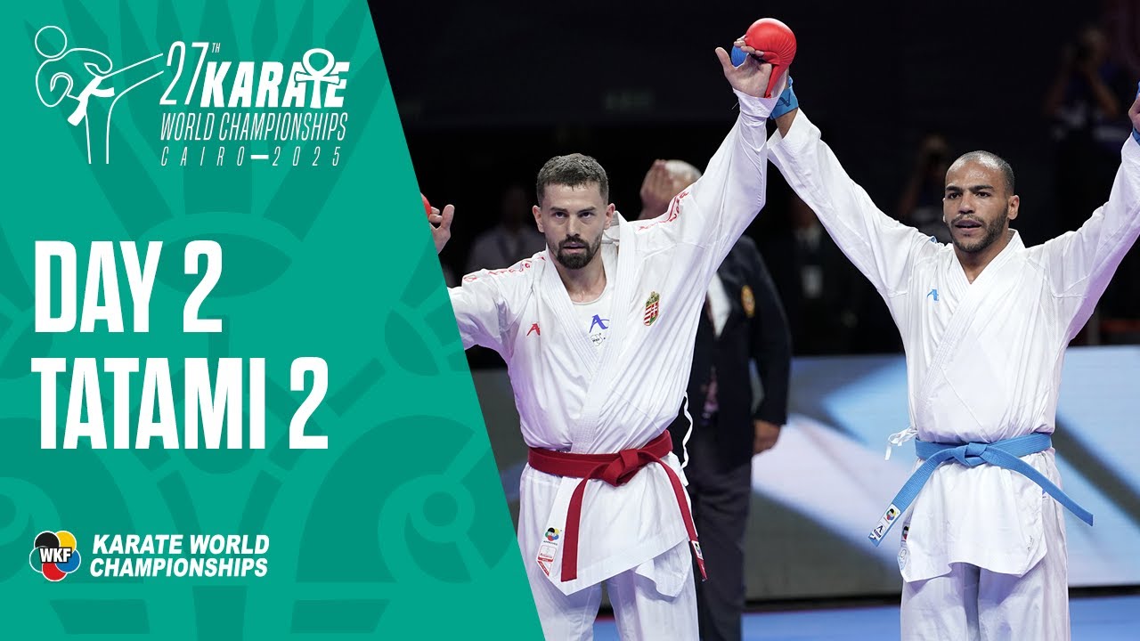 Karate World Championships | Friday - Tatami 2 | All the action from Cairo LIVE! Watch the second day of competition of #KarateCairo2025 on tatami 2. COMPETITION CALENDAR (local time) - Kata Individual – Round Robin o 9:00 Male - Kumite Individual – Round Robin o 10:40 Female -61 Kg o 12:15 Male -84 Kg o 13:50 Female -68 Kg o 15:30 Male +84 Kg o 17:05 Female +68 Kg - Kata Individual – Round of 16 & Quarter Finals o 18:45 Male - Kumite – Round of 16 o 19:10 Female & Male -61kg/ -84kg/ -68kg/ +84kg/ +68kg o For full calendar and results go to https://bit.ly/KarateCairo2025 SUBSCRIBE ► http://bit.ly/N7c4H0 Official YouTube channel of the World Karate Federation *********************************** The World Karate Federation in Social Media: YouTube: https://www.youtube.com/user/WKFKarateWorldChamps Instagram: http://instagram.com/worldkaratefederation Twitter: https://twitter.com/worldkarate_wkf Facebook: https://www.facebook.com/wkfofficial TikTok: @worldkaratefederation Web: http://wkf.net/
