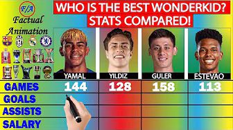 Lamine Yamal vs Kenan Yildiz vs Arda Guler vs Estevao Stats Comparison. This video is about Comparing Lamine Yamal Stats, Kenan Yildiz Stats, Arda Guler Stats and Estevao Stats HOW I MAKE MY VIDEOS Tutorials only (Short Version) - https://willyngugi.gumroad.com/l/tuto... Tutorials & More (Extensive version) - willyngugi.gumroad.com/l/tutorialsandtools PLEASE ⚽️Subscribe ⚽️Like ⚽️Comment ⚽️Share 📍MORE COMPARISONS (Feat. Salah, Messi, Ronaldo & More) - • MESSI VS RONALDO COMPARISON | WHO IS THE G... For enquiries email me DIRECTLY at : factualanimation8@gmail.com 📍DISCLAIMER All details used in this comparison are Truthful and Factual as displayed from official websites for the clubs, leagues and National teams that the players have played in. The Comparison is just for fun, and just for exploring the world of the beautiful game. No harm or disrespect is intended to any player or football fan whatsoever, the comparison is just for fun. Thank you. 📍ABOUT THE CHANNEL OWNER Hello there good person, my name is Will, the founder of Factual Animation YouTube channel. I do all the research, voice, animation, editing, distribution and everything else involved. I create amazing content about football stars, football clubs, national football teams and legends around the world of football, showing you their stories, achievements and football stats in general. I upload multiple videos weekly, be sure to subscribe to never miss on your favorite stars and teams. Thanks!