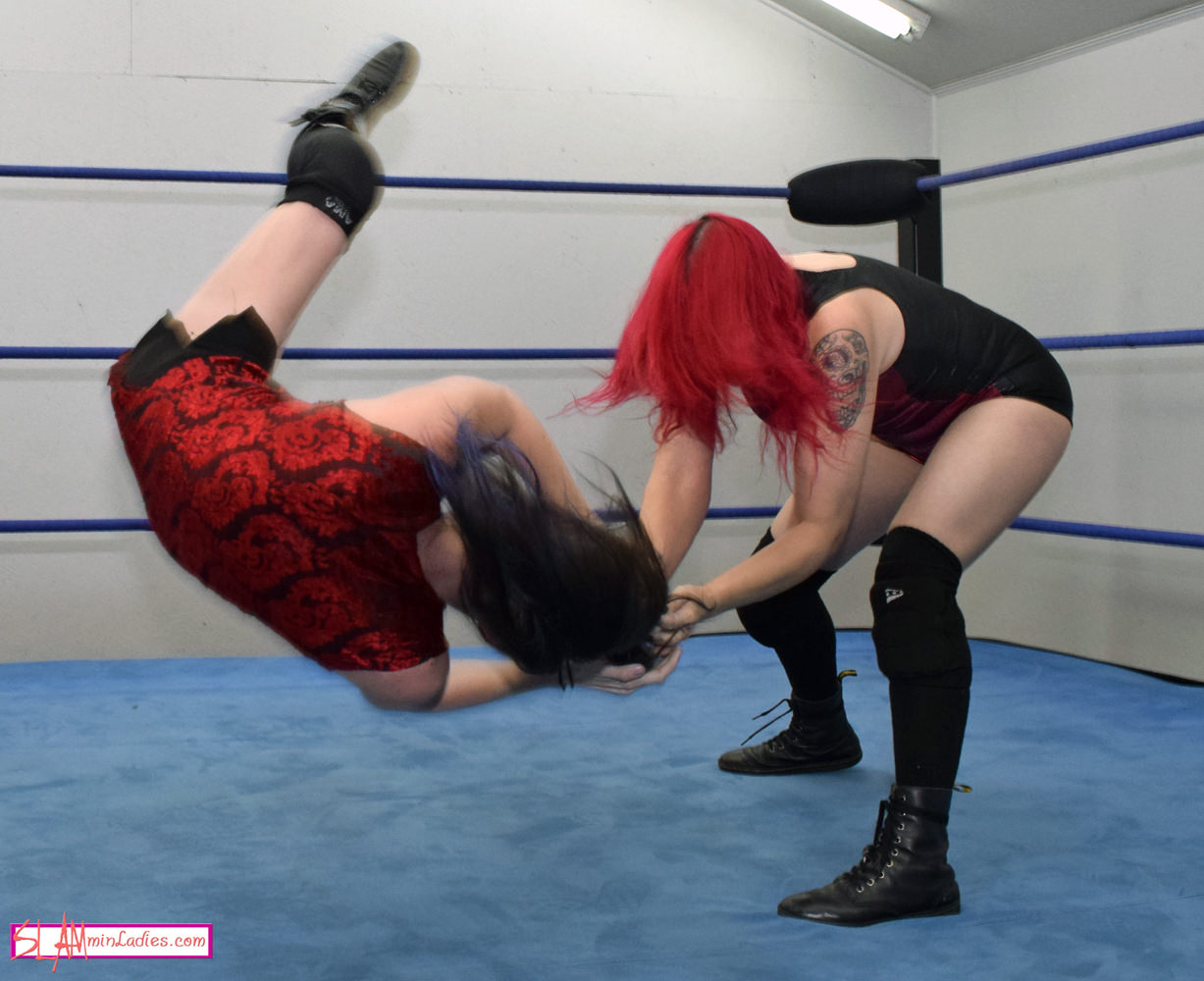 When you’re squaring off with Sweet Saraya, it’s not enough to give your all from bell to bell. You have to be ready for anything, at any time. Leva forgets this rule, and gets attacked before the bell by the veteran Saraya, who focuses on Leva’s hair, then slaps on a Full Nelson before nailing her with a few thunderous Headbutts. Saraya ties the helpless Leva in the ropes, tosses her across the ring by her hair, and adds in a few rope chokes and eye rakes for good measure. Saraya unleashes her arsenal of vicious and inventive submission holds on Leva, who tries valiantly to fight through the pain. But it’s not a matter of “if” Leva will tap out … it’s a matter of “when.”