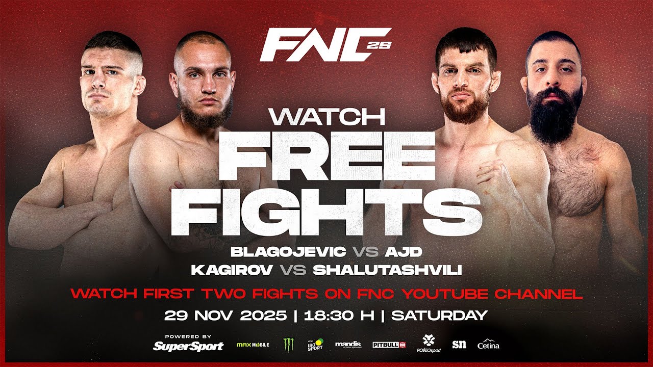 The first two bouts of the FNC 25 powered by SuperSport card Blagojević vs Ajd & Kagirov vs Shalutashvili - will be streamed for FREE on the FNC YouTube channel starting at 18:30 CET on Friday ⚔️ The rest of the card will be available worldwide on the FNC.tv platform Viewers in Croatia and Slovenia can watch the exclusive broadcast on VOYO Tickets for the event are still available at Eventim.hr