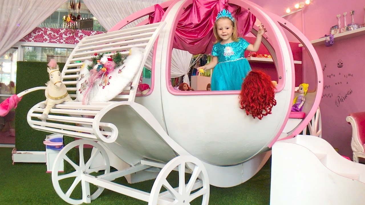 Мы нашли тайную комнату принцессы Эльзы из мультика. Много волшебства и приключений. Огромная карета для принцесс и много нарядов. Принцесса Эльза примеряет туфли и кушает праздничный торт.
