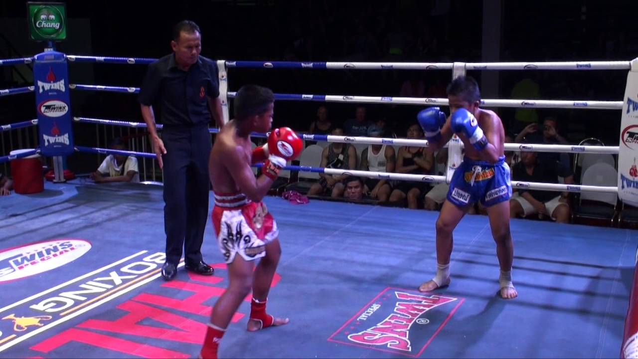 13 year old Thai fighter M-2, a student of TMT trainer Kru M, fights Saengtawan at Chalong boxing stadium on the 19th of April 2016. http://www.tigermuaythai.com/