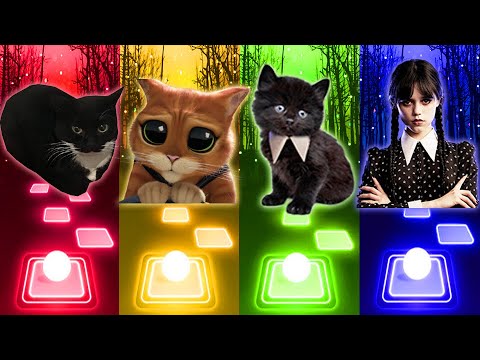 Maxwell Cat vs Puss in Boots vs Cute Cat vs Wednesday Addams - OMG Tiles Hop EDM Rush