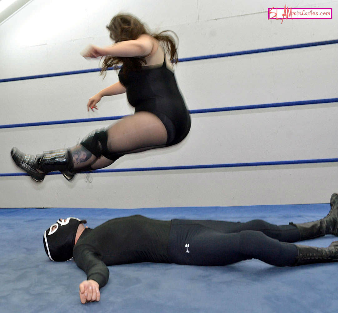 Joe Bear returns-he's been working out and is ready for a challenge. A test of strength is cut short and Miss Rachel doesn't let up again. For 12 agonizing minutes, Bear finds himself on the receiving end of kicks, throws, chokes and is generally pummeled by the stout Brit. She takes great pleasure in nearly ripping his arm from its socket, putting her full weight on his chest and nearly knocking him out more than once. She keeps him awake, as it turns out, because she want a verbal submission from him--which is exactly what she eventually extracts!