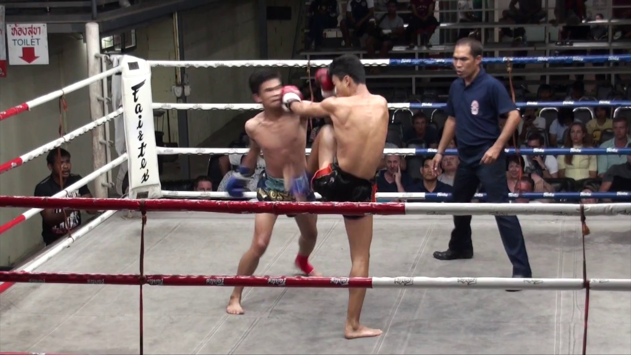 16 year old Tiger Muay Thai fighter Petpayak (red gloves) fights Kaimookao at Suwit stadium on the 3rd of March 2017. http://www.tigermuaythai.com/ http://www.tigermuaythai.com/