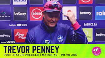 Paarl Royals head coach Trevor Penney faced the media after his team's 45-run home defeat to Joburg Super Kings dropped them into the Eliminator - and a rematch with the victors - rather than Qualifier 1 they were after. Hear Penney's post-match thoughts from Boland Park... Betway SA20 Season 4: 26 Dec 2025 to 25 Jan 2026! 🎟 GET YOUR TICKETS NOW: https://sa20.mobi/Season4Tickets Thanks for watching our video! Hit the SUBSCRIBE button to tune into Incredible T20 cricket action: The latest SA20 news, incredible moments, season highlights, post-match press conferences, player interviews and profiles, commentary, and more. Stay on top of every thrilling Betway SA20 Season 4 moment: 🌐 Website ► https://www.sa20.co.za 📧 Newsletter ► https://sa20.mobi/EmailUpdates 👍 Facebook ► @SA20League 📸 Instagram ► @sa20_league 🐦 X (Twitter) ► @SA20_League 🎵 TikTok ► @sa20_league Subscribe now and never miss: match highlights, player features, press conferences, exclusive series, action-packed moments, straight to your feed. #BetwaySA20 #WelcomeToIncredible #SA20 #T20Cricket #CricketHighlights #CricketFans #trevorpenney #headcoach #coaching #paarlroyals #bolandpark #playoffs #eliminator #racetotheplayoffs #roadtothefinal #PRvJSK #season4 #match30