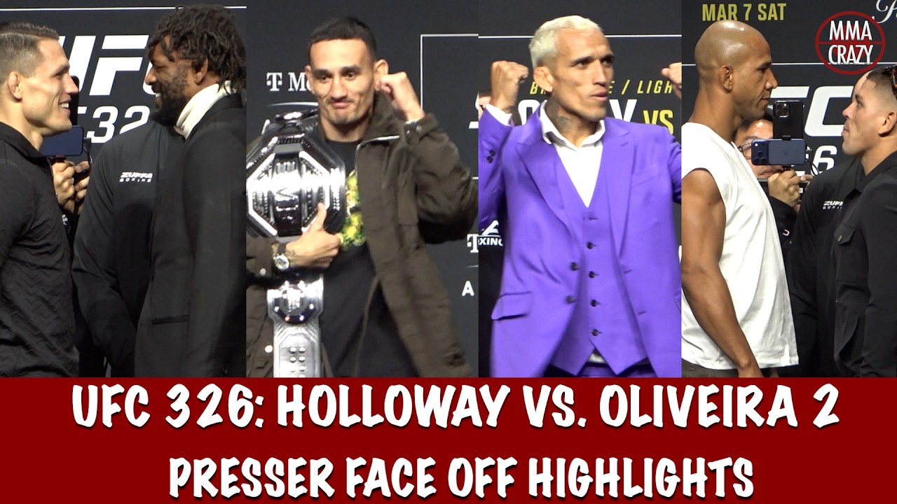 UFC 326 Fighters face off at Press Conference Max Holloway vs. Charles Oliveira Caio Borralho vs. Reinier de Ridder Raul Rosas Jr. vs. Rob Font Michael Johnson vs. Drew Dober Gregory Rodrigues vs. Brunno Ferreira Twitter: http://www.twitter.com/MMACrazy Instagram: http://www.Instagram.com/MMA_Crazy Click on the link below to subscribe http://www.youtube.com/user/mmacrazytv?sub_confirmation=1