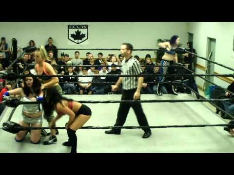 Elite Canadian Championship Wrestling (ECCW) - November 14, 2015 - PoCoPALOOZA Elks Hall in Port Coquitlam, BC ONE FALL , TAG TEAM MATCH: Violet & “Lawless” Lady Gunz vs. Nicole Matthews & “QT” Quinn Taylor
