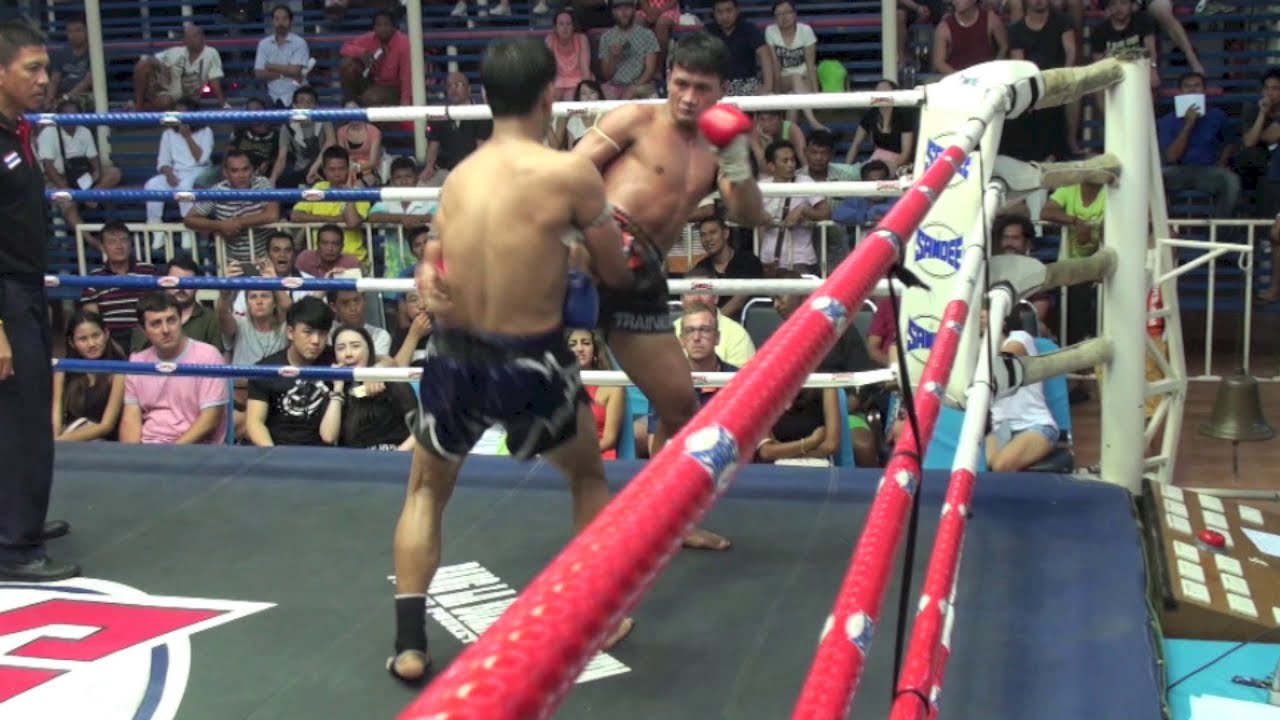 Wanghinlek (red glvoes) fights Sakultong in the main event at Bangla stadium, Phuket on the 27th of May 2015. http://www.tigermuaythai.com/ http://www.fightingthai.com/