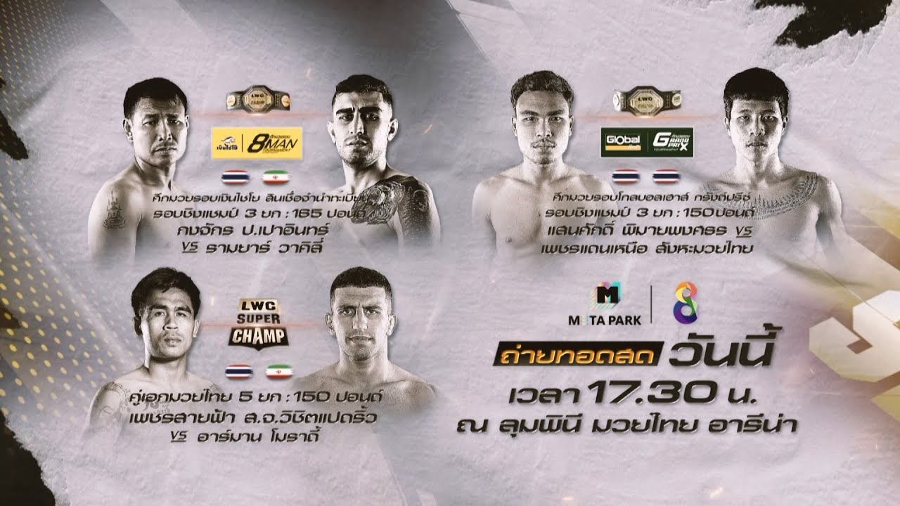 🔥วันนี้! ศึกมวยไทยนานาชาติ "LWC Super Champ" ลุมพินีเวิลด์ แชมป์เปี้ยนชิป ซุปเปอร์แชมป์ 🥊ศึกมวยรอบเงินไชโย สินเชื่อจำนำทะเบียน รอบชิงชนะเลิศ พิกัด 165 ปอนด์ มวยเก๋า ซ้ายผ่านตลอด “กงจักร ป.เปาอินทร์” ซ้ายอ่างทอง จากอ่างทอง ชิงแชมป์กับ เปอร์เซียกำปั้นหนัก “รามยาร์ วาคิลี่” จากอิหร่าน 🥊ศึกมวยรอบโกลบอลเฮ้าส์ กรังด์ปรีซ์ รอบชิงชนะเลิศ พิกัด 150 ปอนด์ “แสนศักดิ์ พิมายพงศธร” มวยศอกสั่งปราสาทสายฟ้า จากบุรีรัมย์ ชิงแชมป์กับ ไอ้หมัดดาวเหนือ “เพชรแดนเหนือ สังหะมวยไทย” มวยฟอร์มสด จากเชียงใหม่ 🥊ศึกไต่บัลลังก์ลุมพินี พิกัด 150 ปอนด์ มวยหมัดหนัก เข่าโหด “เพชรสายฟ้า ส.จ.วิชิตแปดริ้ว” จากร้อยเอ็ด พร้อมชน มวยดาวรุ่ง วงในสุดแกร่ง “อาร์มาน โมราดี้” จากอิหร่าน ณ ลุมพินี มวยไทย อารีน่า! เวลา 17.30 เป็นต้นไป ถ่ายทอดสดทาง #ช่อง8 📺รับชมรายการมวยสุดมันส์ได้ที่ 👉 https://bit.ly/Muaych8 และ https://www.youtube.com/channel/UCGbGuLCFurHwawIvUAH6Y2Q #ศึกมวยรอบเงินไชโย #เงินไชโย #สินเชื่อจำนำทะเบียนรถ #ศึกมวยรอบโกลบอลเฮ้าส์ #โกลบอลเฮ้าส์กรังด์ปรีซ์ #ครบหลากหลายให้บ้านคุณ #metapark #LWCSuperChamp #ลุมพินีมวยไทยอารีน่า #มวยช่อง8 #Muaych8 #ช่อง8กดเลข27 #Ch8KingOfFightingSports http://www.facebook.com/muaych8 https://www.tiktok.com/@muaych8 http://instagram.com/muaych8 https://twitter.com/thaich8 http://www.thaich8.com