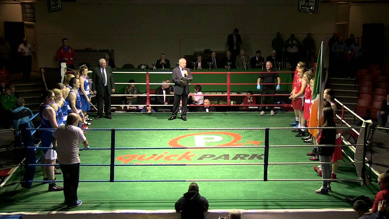 Boxers taking part in the Women's Elite National Boxing Championship Finals are introduced. National Boxing Arena Saturday 24th January 2015.