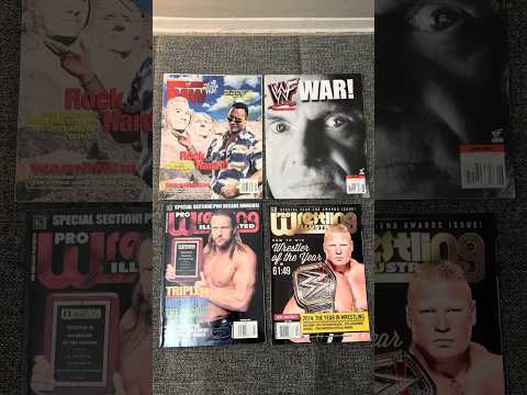 This video shows the covers of WWF Raw Magazine September 1998 issue, WWF Magazine June 2001 issue, Pro Wrestling Illustrated February 2010 issue and Pro Wrestling Illustrated April 2015 issue