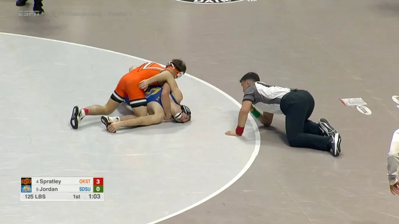 2025 Big 12 Wrestling Championships Quarterfinals 125lbs Troy Spratley (OKST) maj dec Tanner Jordan (SDSU) I do not own this video, all credit/rights to ESPN/Big 12