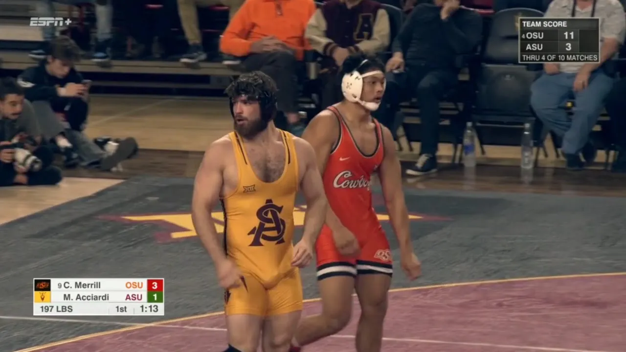 2025/26 Arizona State vs Oklahoma State wrestling dual 197lbs #9 Cody Merrill (OKST) tech fall Maxi Acciardi (ASU) I do not own this video, all credit/rights to ESPN/BIg 12