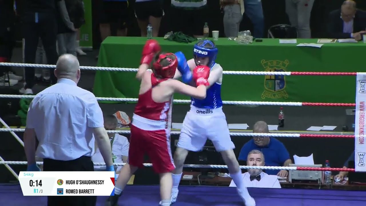 Hugh O’Shaughnessy (St Conleths) and Romeo Barrett (Titans) contested this 2024 National BG1 Championship 54kg final, streamed by @streamsport-ie7508 #boxing #boxingireland #boxer #irishboxing #IABA #olympicsport #bout #fight #titleboxing #boxingnews #boxeo #box #championshipboxing