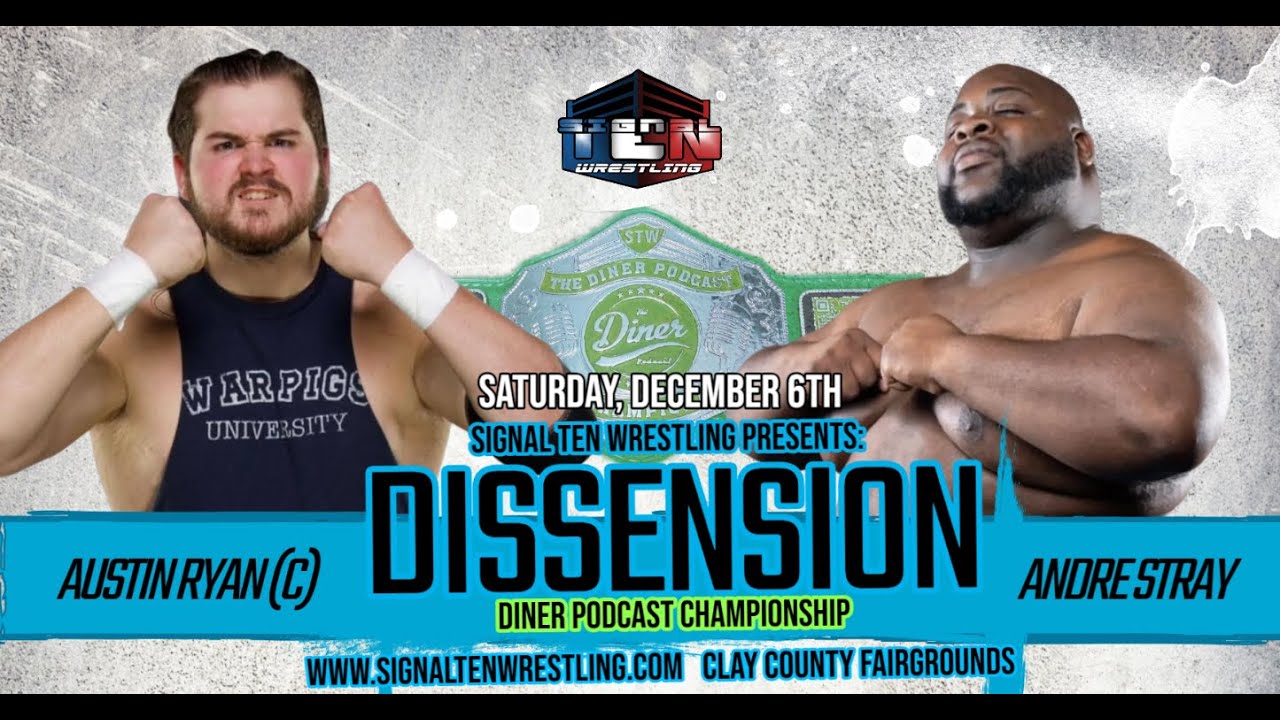 Signal Ten Wrestling December 6, 2025 - Austin Ryan v. Andre Stray - Dissension www.signaltenwrestling.com #indywrestling #professionalwrestling #wrestling #signaltenwrestling Austin Ryan v. Andre Stray - Diner Podcast Championship - Dissension - 12/06/2025
