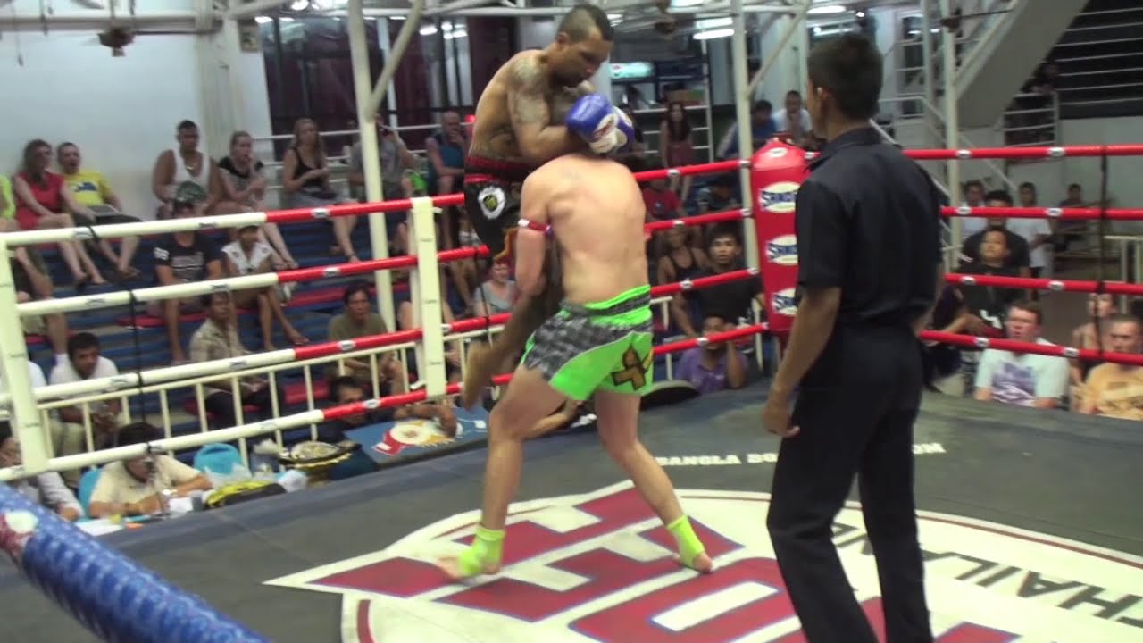 Fighting out of Tiger Muay Thai, Brazilian fighter Diego (blue gloves) faces Cian, fighting out of Sumalee boxing gym. http://www.tigermuaythai.com/ http://www.fightingthai.com/