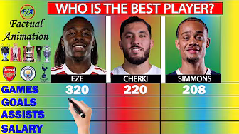 Eberechi Eze vs Rayan Cherki vs Xavi Simons Stats Comparison. I have compared their club stats, national team stats, trophies won, penalty records, freekick records, discipline on the pitch and total career stats. #eze #cherki #simons #arsenal #manchestercity #tottenham Eberechi Eze stats, Rayan Cherki stats, Xavi Simons Stats, Eze vs Cherki vs Simons, Cherki vs Eze vs Simons stats, Eze stats, Cherki Stats, Simons stats, Arsenal Eberechi Eze Stats, Man City Rayan Cherki Stats, Tottenham Xavi Simons Stats, Arsenal, Manchester City, Tottenham Hotspur HOW I MAKE MY VIDEOS Tutorials only (Short Version) - https://willyngugi.gumroad.com/l/tuto... Tutorials & More (Extensive version) - willyngugi.gumroad.com/l/tutorialsandtools PLEASE ⚽️Subscribe ⚽️Like ⚽️Comment ⚽️Share 📍MORE COMPARISONS (Feat. Salah, Messi, Ronaldo & More) - • MESSI VS RONALDO COMPARISON | WHO IS THE G... For enquiries email me DIRECTLY at : factualanimation8@gmail.com 📍DISCLAIMER All details used in this comparison are Truthful and Factual as displayed from official websites for the clubs, leagues and National teams that the players have played in. The Comparison is just for fun, and just for exploring the world of the beautiful game. No harm or disrespect is intended to any player or football fan whatsoever, the comparison is just for fun. Thank you. 📍ABOUT THE CHANNEL OWNER Hello there good person, my name is Will, the founder of Factual Animation YouTube channel. I do all the research, voice, animation, editing, distribution and everything else involved. I create amazing content about football stars, football clubs, national football teams and legends around the world of football, showing you their stories, achievements and football stats in general. I upload multiple videos weekly, be sure to subscribe to never miss on your favorite stars and teams. Thanks!