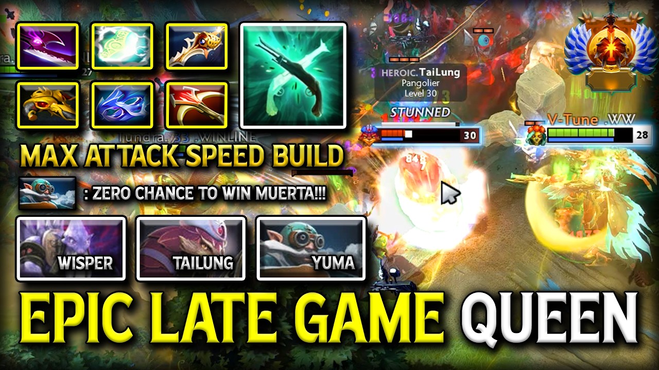 EPIC LATE GAME QUEEN CARRY MUERTA | MAX ATTACK SPEED BUILD FACING AGAINST YUMA GYROCOPTER DOTA 2