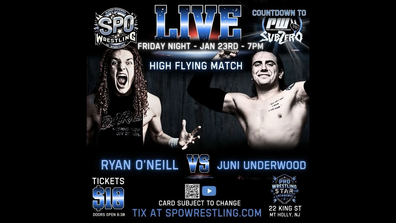 This match features Juni Underwood vs Flyin' Ryan O'Neill from SPO Live episode 4 that took place 1/23/2026 at the Pro Wrestling Star Academy