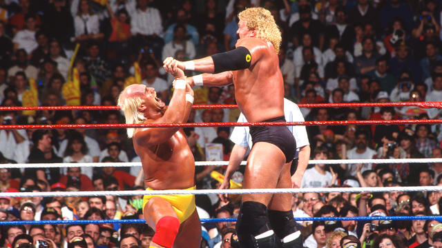 Hulk Hogan goes one-on-one with Sid Justice in the main event of WrestleMania VIII.