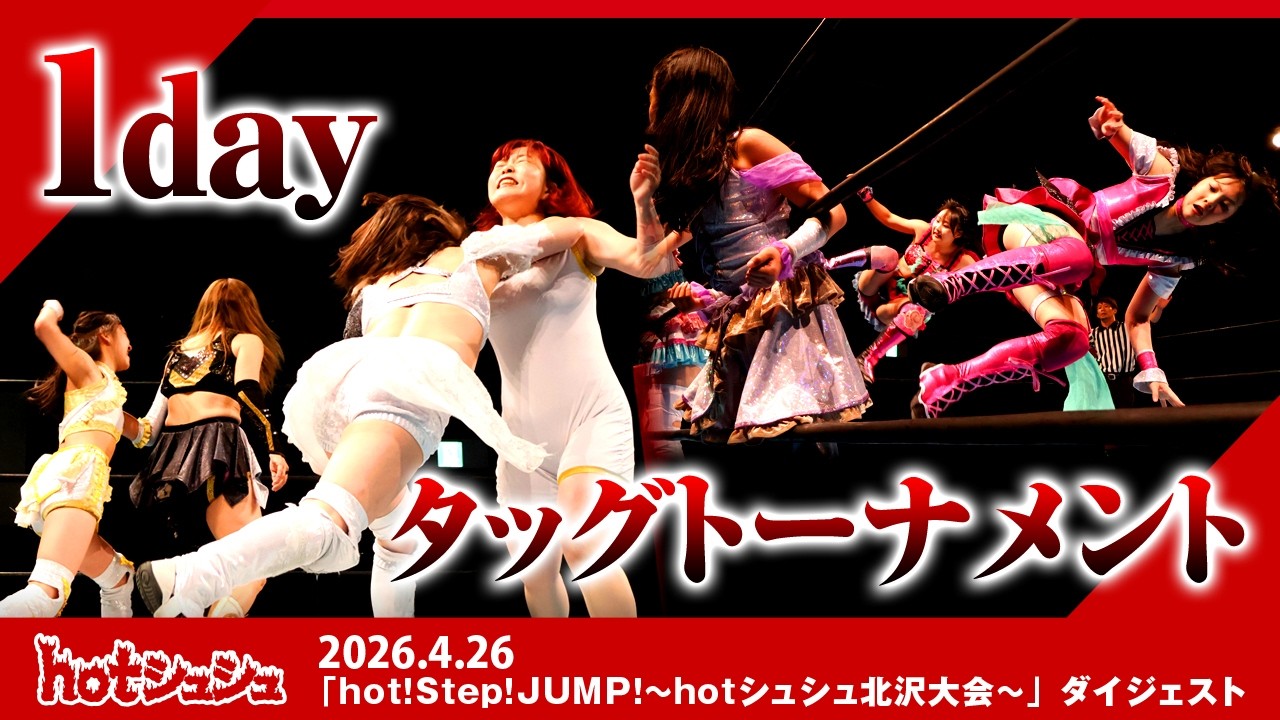 2026年4月26日に後楽園ホールで行われた、「hot!step!jump!~hotシュシュ北沢大会~」のダイジェスト映像。 後楽園ホール大会後最初の大会は1dayタッグトーナメント。エントリーしたのは藪下めぐみ&さいとう、優華&りこ、しのせ愛梨紗&緋彩ませ、緋彩もえ&美蘭の4チーム。優勝するのは!? Ignite提供試合はサンライズ164、澤村淀五郎、愁兎、ジョルト田代、月嶋ヨウ、ランバージャックによる6人タッグマッチ。 サマスとこゆきはジェーク・ブラドックと高岩竜一とのタッグマッチ。 ミス・モンゴル試練の番人シリーズも第11弾。今回の相手はマドレーヌ。 ■ICERIBBON LIVE(全試合配信) https://iceribbonlive.ctpfs.jp/store ◆チケット:3,000円 ※販売及びアーカイブ視聴期限:4月7日まで #プロレス #hotシュシュ #藪下めぐみ #さいとう #優華 #りこ #しのせ愛梨紗 #緋彩ませ #緋彩もえ #美蘭 #サンライズ164 #澤村淀五郎 #愁兎 #ジョルト田代 #月嶋ヨウ #ランバージャック #サマス #こゆき #ジェーク・ブラドック #高岩竜一 #ミス・モンゴル #マドレーヌ