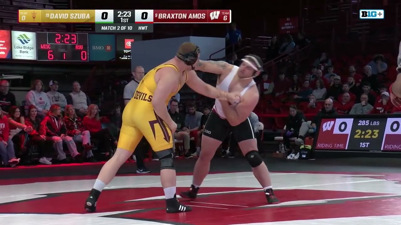 HWT: Arizona State's David Szuba vs. Wisconsin's Braxton Amos | Wisconsin Wrestling