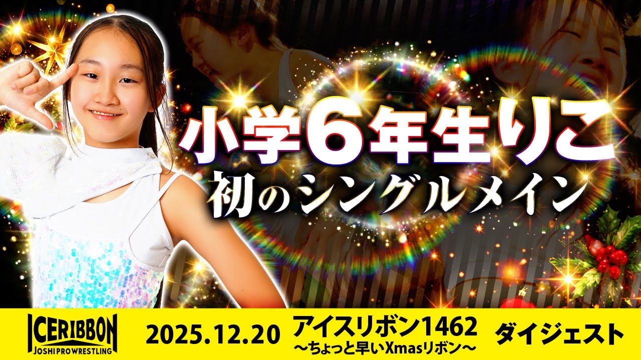 2025年12月20日に行われた「アイスリボン1462~ちょっと早いXmasリボン~」の大会ダイジェスト。 来場者による抽選で試合順が決定。 第1試合の神姫楽ミサ&若菜きらり vs 杏ちゃむ&松下楓歩は、リング上に線を引き、片方のエリアのみ高速カウントでフォールされる特殊ルール。 第2試合は今大会唯一の通常ルール。Yappyと対戦するのは、フランスからやって来たCeline Faery。 第3試合の藤田あかね&トトロさつき vs 海乃月雫&しのせ愛梨紗は、5分ごとに変わるルールに、選手もレフェリーも大混乱!! そしてメインは柳川澄樺とリコのシングルマッチ。柳川のみ【サ ン タ ク ロ ース】の何れかの文字で始まる技名(濁点があっても可)でしか勝利出来ない変則ルール。初のシングルメインのりこが勝利できるのか!? CLUB ICERIBBONで全試合生配信(月額1,190円) https://youtu.be/XJmhiBxFMVg 大会試合結果 https://iceribbon.com/event_detail.php?id=3961 アイスリボンの直近大会スケジュール http://iceribbon.com/calender.php プロレスファン必携アプリ! STOMPING-ストンピン- https://stomping.jp/?utm_source=qrcode&utm_medium=referral&utm_campaign=icerribon_youtube2025 #プロレス #iceribbon #hotシュシュ #飛鳥プロレス #信州ガールズ #神姫楽ミサ #若菜きらり #杏ちゃむ #松下楓歩 #Yappy #Celine_Faery #藤田あかね #トトロさつき #海乃月雫 #しのせ愛梨紗 #柳川澄樺 #りこ