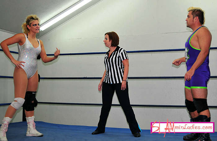 Well, when Jennifer starts the trash talking off, bragging about how strong her back is, you just know things aren't gonna go well for her... Things quickly escalate into a 2 out of 3 Backbreaker Competition with Roxi presiding as ref. Jennifer finds herself on the losing side of the coin toss and on the PAINFUL side of a textbook over-the-knee Backbreaker. It's not long before Jen's begging for release and her shot at giving Joey a taste of his own medicine. Well, Joey has no intention of giving her the satisfaction and turns the tables, skipping Jennifer's turn! Soon, it's Jennifer who's out cold unable to back her opening remarks. Perhaps she'll rethink her strategy next time she faces Joey Knight.