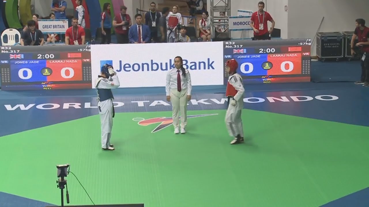 Jade JONES (GBR) vs Nada LAARAJ (MAR) W-57 1/32 2017 World Taekwondo Championships Muju, Korea Insta: https://www.instagram.com/tkdonefamily/ Youtube: https://www.youtube.com/c/tkdonefamily VK: https://vk.com/tkdonefamily FB: https://facebook.com/groups/tkdonefamily