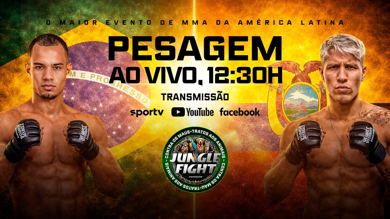 Já entrando no clima do JUNGLE FIGHT 148, você acompanha ao vivo com a gente a pesagem cerimonial do evento! Vem conferir se todos os lutadores bateram o peso e também as intensas encaradas pré-luta! ================================== CANAIS 👉Participe do nosso canal no WhatsApp e receba conteúdos exclusivos: https://whatsapp.com/channel/0029Va9eCiU9MF92GEFqnW0t 👉Seja membro do nosso canal e tenha acesso a benefícios em nossa comunidade: https://www.youtube.com/channel/UC5M5y5qpJRvaLnAIRVzGqoA/join 👉Se inscreva em nosso canal e ative as notificações: https://www.youtube.com/@Junglefcoficial ================================== PLAYLISTS ✅Assista todos os eventos na íntegra: https://youtube.com/playlist?list=PLW3j7sv_VkeFcXSaAXTeJMnca4xXzs_9X&si=cyQnG0vAOxke9Kfi ✅Fique ligado em nossos Podcasts Semanal: https://youtube.com/playlist?list=PLW3j7sv_VkeEfE3yn41YjPKQEAaK8cgZV&si=NfenaCMPZvYbv0C3 ✅Vida de Guerreiro - O documentário sobre os Guerreiros da Selva: https://youtube.com/playlist?list=PLW3j7sv_VkeHoMJx8cilQurgjIC0mGaiK&si=Cr0Prl3H7w48APeb #JungleFight #MMA #JungleFightNoCombate #JungleFightNaGlobo