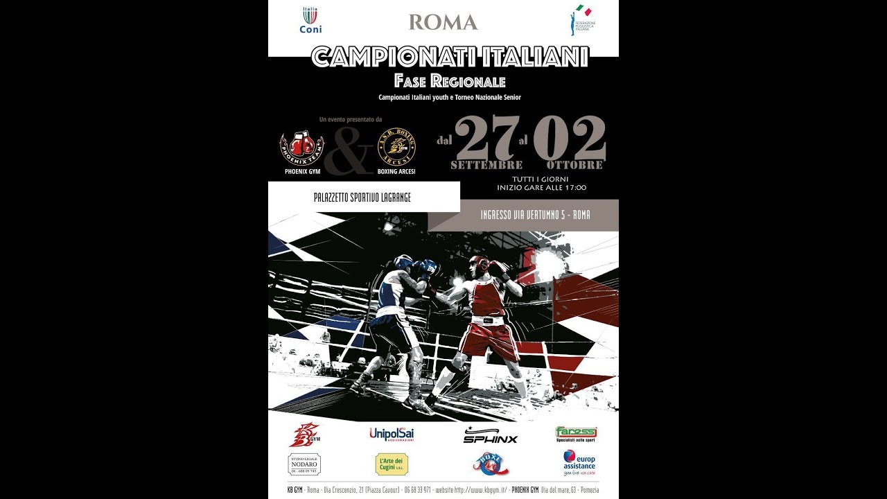 Finale Torneo Nazionale del 02-10-2016, fase regionale Senior. Palazzetto Lagrange delle Fiamme Oro, organizzazione Phoenix Team e ASD Boxing Arcesi.