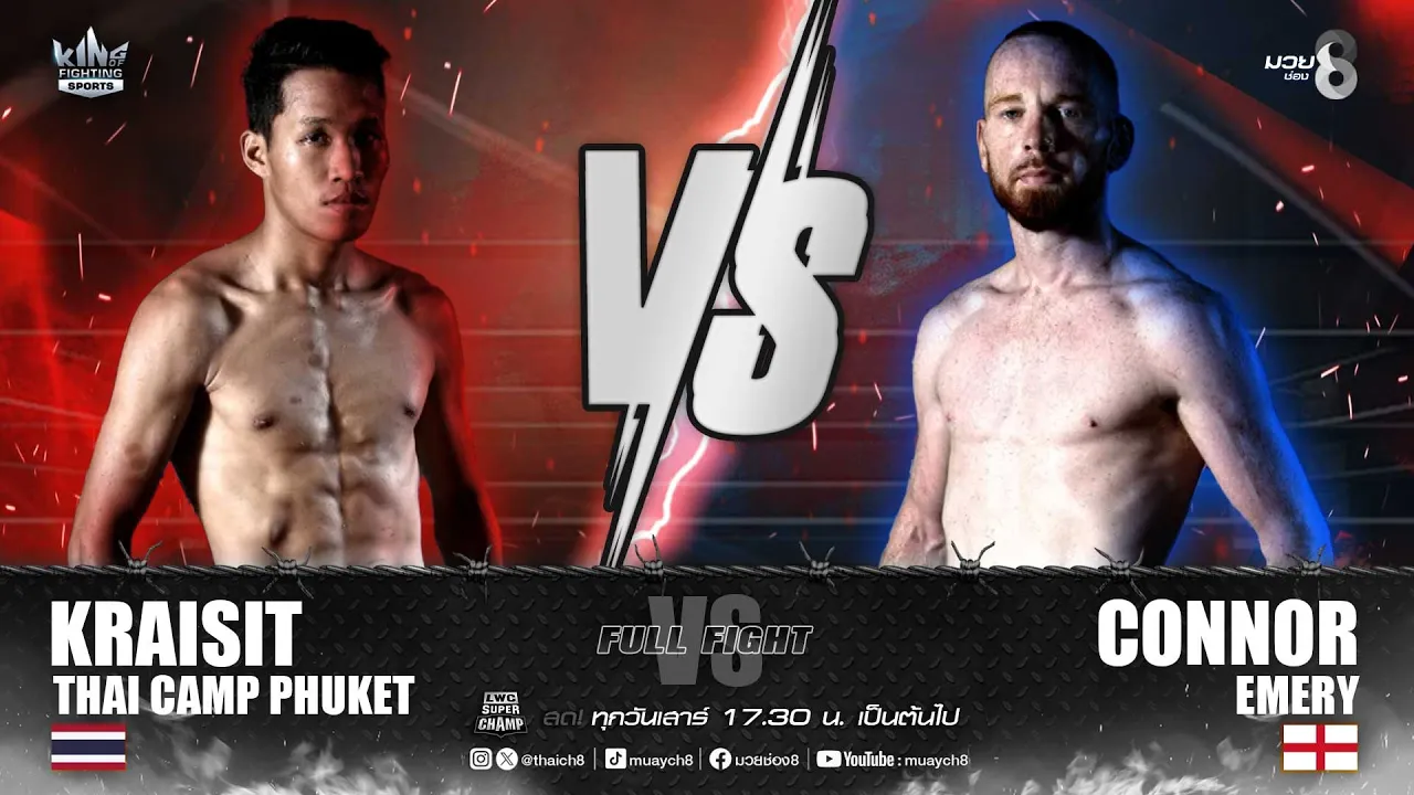 KRAISIT THAI CAMP PHUKET (THAILAND) VS CONNOR EMERY (ENGLAND) 📺 รับชมรายการมวยสุดมันส์ได้ที่ 👉 https://bit.ly/Muaych8 #มวยช่อง8 #Muaych8 #ช่อง8กดเลข27 #Ch8KingOfFightingSports http://www.facebook.com/muaych8 https://www.tiktok.com/@muaych8 http://instagram.com/muaych8 https://twitter.com/thaich8 http://www.thaich8.com