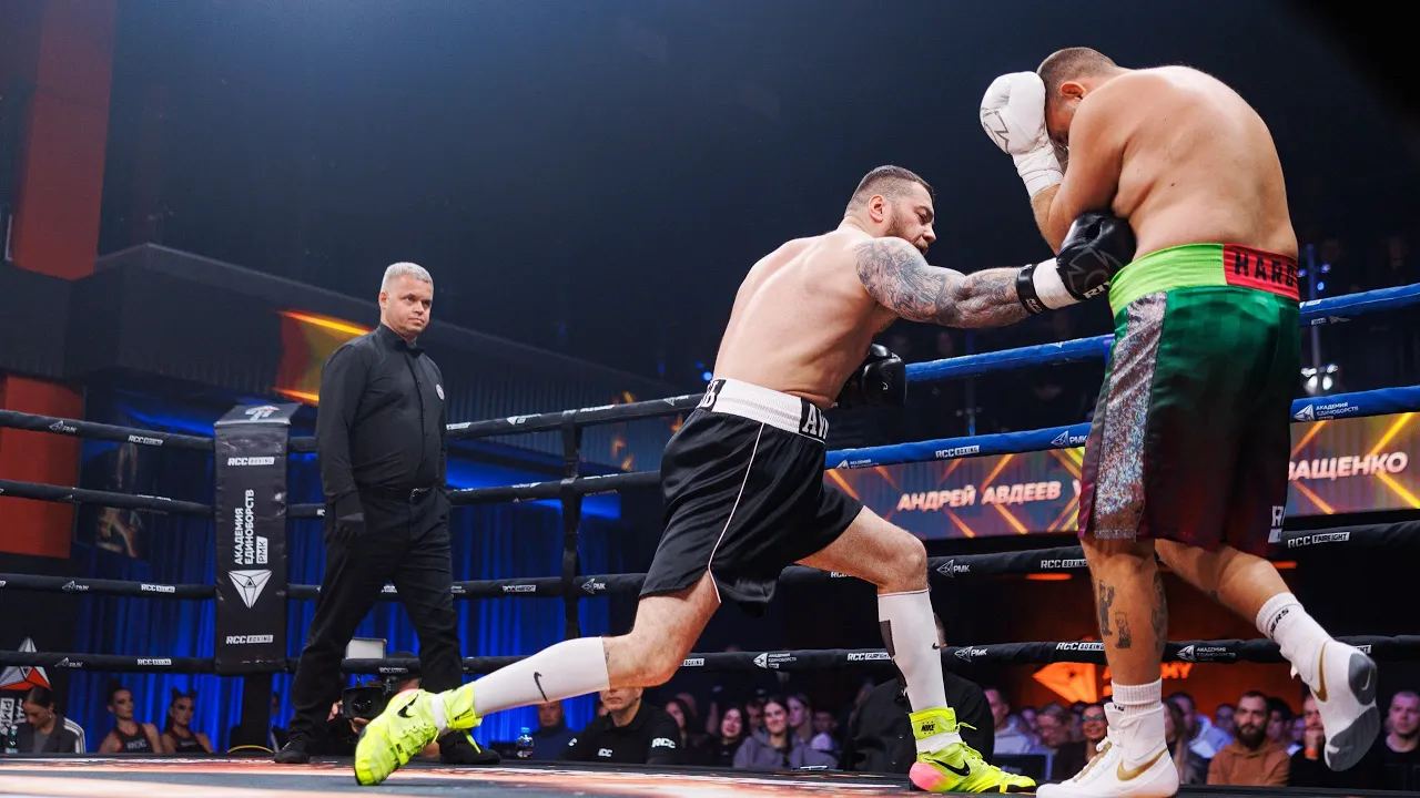В третьей паре турнира «Путь в RCC Boxing» ринг разделили Андрей Авдеев и Владислав Иващенко. Они провели шестираундовый бой в супертяжелом весе. Авдеев сразу же пошел вперед, стал агрессивно работать первым номером и сумел тут же завершить бой в свою пользу. Джеб по корпусу от Андрея серьезно повлиял на Иващенко, Авдеев бросился добивать соперника, зажал Владислава в углу и обрушил серию боковых, после чего рефери остановил поединок. Мощная победа Андрея Авдеева! Организатор турнира RCC Boxing Promotions https://vk.com/rccboxing https://www.instagram.com/rccboxing/ https://www.facebook.com/rccboxing/ https://twitter.com/rcc_sport http://rccboxing.pro/ Турнир проходит в Екатеринбурге в Академии единоборств РМК https://vk.com/rcc_academy instagram: https://www.instagram.com/rcc_academy/ facebook: https://www.facebook.com/academy.rcc/ twitter: https://twitter.com/rcc_sport https://rcc-sport.ru/ На бойцах одежда RCC Sport https://www.instagram.com/rcc_sport/ https://www.facebook.com/rccsport https://rccsportwear.com #RCC #РМК