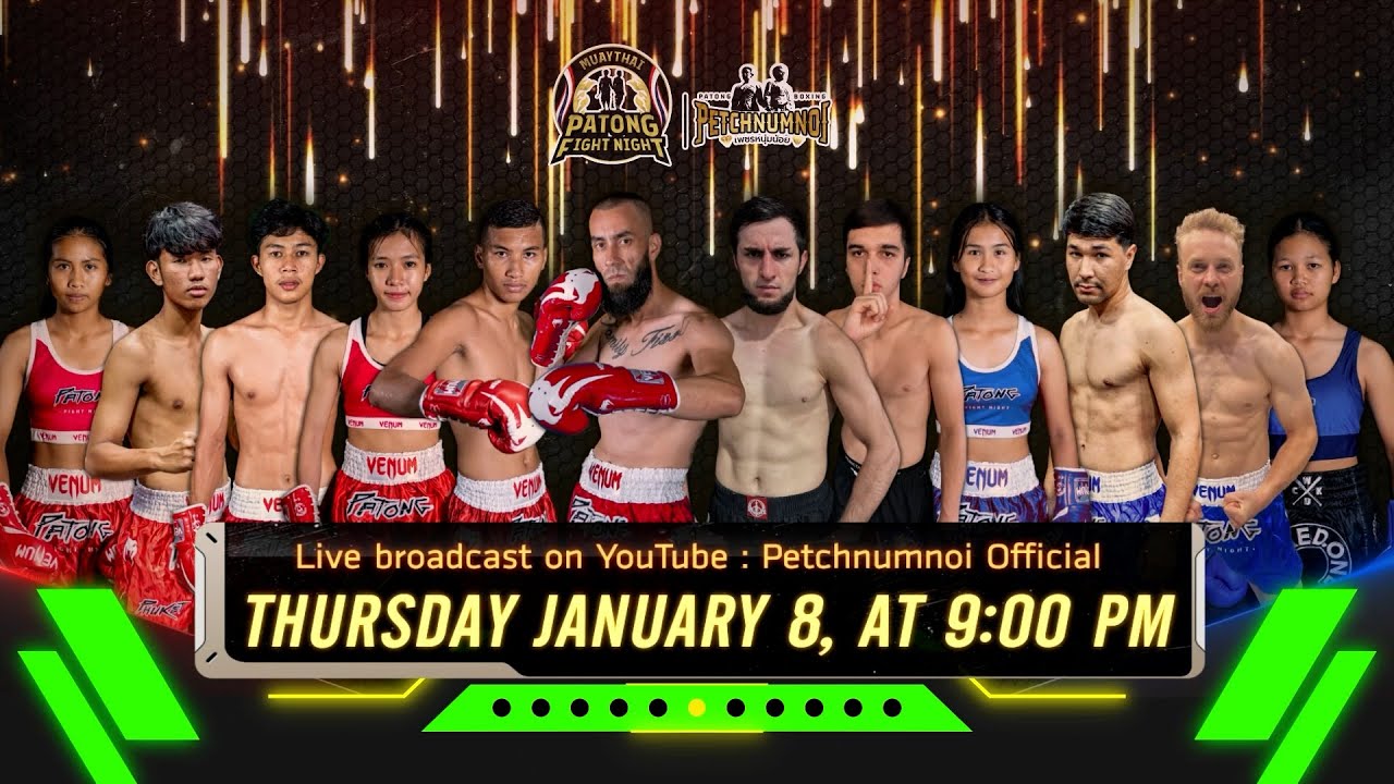[Live] ศึกป่าตองไฟท์ไนท์ วันพฤหัสบดี ที่ 8 มกราคม 2569 เวลา 21:00 น. Patong Fight Night 8JANUARY 2026 #มวยไทย #มวยดี #มวยสนุก #มวยพลิก #ป่าตอง #สนามมวยป่าตอง #นานาชาติ #เพชรหนุ่มน้อย #PETCHNUMNOI #MUAYTHAI #PATONG #PHUKET #PATONGFIGHTNIGHT #FIGHT #thailand #martialarts #brutal #boxing #thaiboxing #stadium