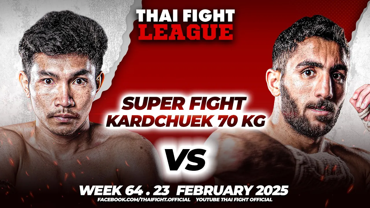 THAI FIGHT LEAGUE #64 🗓️ On Sunday, February 23, 2025 📍 At WORLD SIAM STADIUM, Tawanna, Bang kapi ⏰ LIVE 6 p.m. to 8 p.m. (ICT) 📺 TH Channel 8 Press 27 (TH & EN) 🇹🇭 YouTube Thai Fight Official 🇹🇭 ไลฟ์สด: youtu.be/watch?v=kMQEgaXBZTA Fight Card 1. Super Fight Kard Chuek 59 KG 🇹🇭 Chomi Kiatchatchai 🆚 Sornsil 🇹🇭 2. Super Fight Kard Chuek 59 KG 🇹🇭 Ketas Tho.Saengthiannoi 🆚 Arian Yarahmadi 🇮🇷 3. Super Fight Kard Chuek 61 KG 🇹🇭 Yodkomkrit Sor.Sunan 🆚 Saeid Nourani 🇮🇷 4. Super Fight Kard Chuek 65 KG 🇹🇭 Artit Sor.Thongphuban 🆚 Kaique Goncalves 🇧🇷 5. Super Fight Kard Chuek 61 KG 🇹🇭 Pakornchai Kiatchatchai 🆚 Payam Sepehri 🇮🇷 6. Super Fight Kard Chuek 70 KG 🇹🇭 Petchthotsakantha 🆚 Mohammad Ramezani 🇮🇷 7. Super Fight Kard Chuek 72 KG 🇹🇭 Wanchalerm Koba Rangsit 🆚 Ali Asirgham 🇮🇷 . #ThaiFightLeague #THAIFIGHT #KardChuek #ไทยไฟท์ลีก #ไทยไฟท์ #ไทยไฟท์ล่าสุด #muaythai #MuayBoran #thaifightkardchuek . Facebook : Thai Fight : https://www.facebook.com/thaifight.official/ Instagram : https://www.instagram.com/thaifight_official/ Twitter : https://twitter.com/THAIFIGHT_TWT Tiktok : https://www.tiktok.com/@thaifight.official Website : http://www.thaifight.com/
