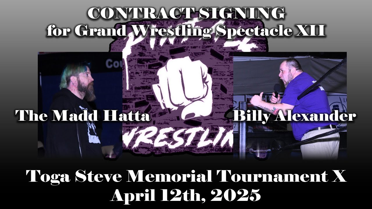There’s no backing down now, Billy Alexander and the Madd Hatta have one last encounter with a contract signing, ahead of their UNSANCTIONED MATCH at Grand Wrestling Spectacle XII… Originally taped April 12, 2025 at "Toga Steve Memorial Tournament X" Ring Announcer: Eric Roe Filming and Editing: Andrew Thannen Billy Alexander entrance music: "Same Old War (Acoustic)" by Our Last Night Madd Hatta entrance music: "Year Zero" by Ghost Pinfall Wrestling claims no ownership of any copyrighted music used. All rights belong to their respective owners. Follow us on Facebook to stay updated on upcoming events: https://www.facebook.com/PWASpringfield
