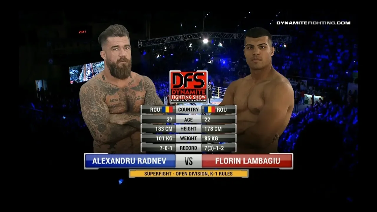 Dynamite Fighting Show 2 | 19 Octombrie | Sala Polivalenta Piatra Nemt Super Fight - Categoria open - Reguli K1 Alexandru Radnev (România) vs Florin Lambagiu (România) ©2018 Dynamite fighting championship®. Commercial reproduction, distribution or transmission of this footage by any means whatsoever without the prior written permission of Dynamite fighting championship® is not permitted.